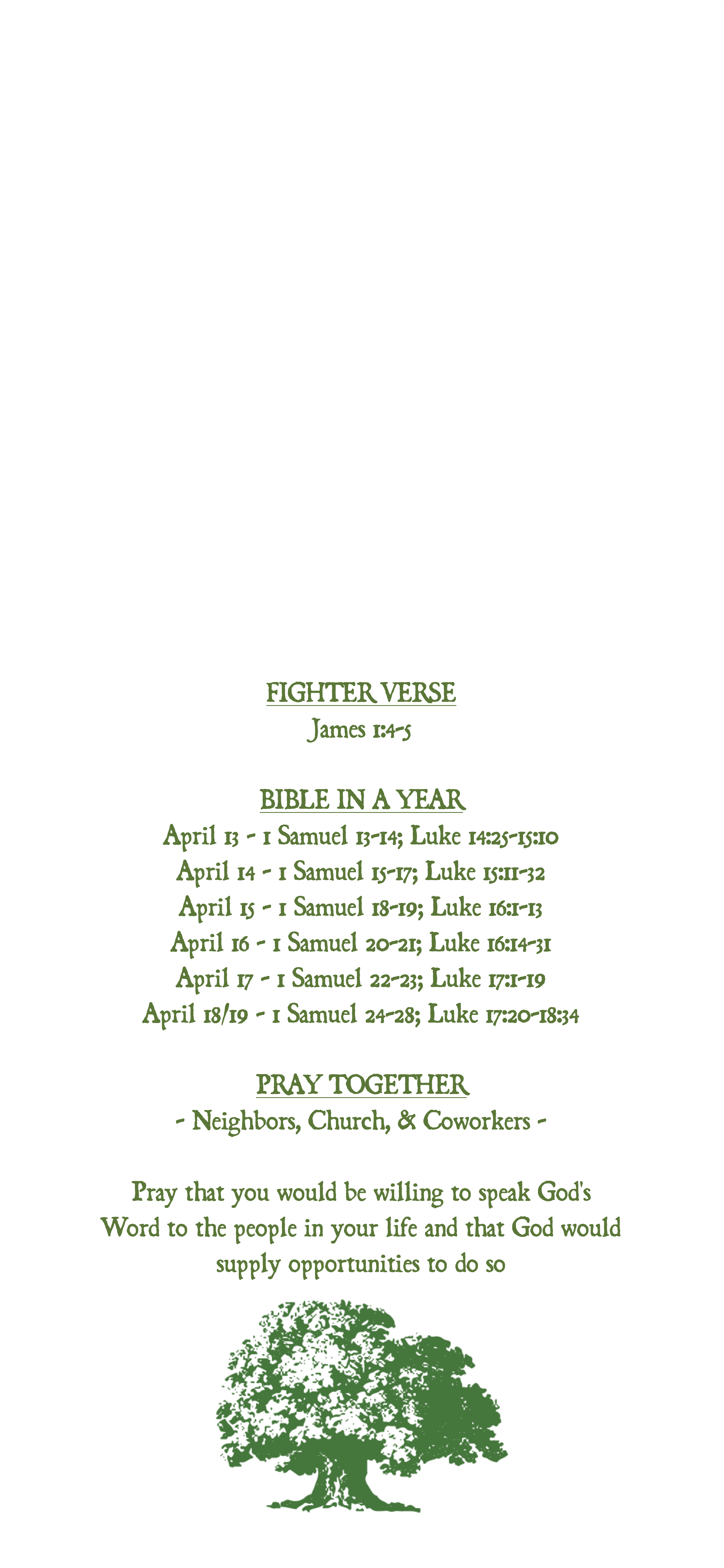 April 18/19 - 1 Samuel 24-28; Luke 17:20-18:34