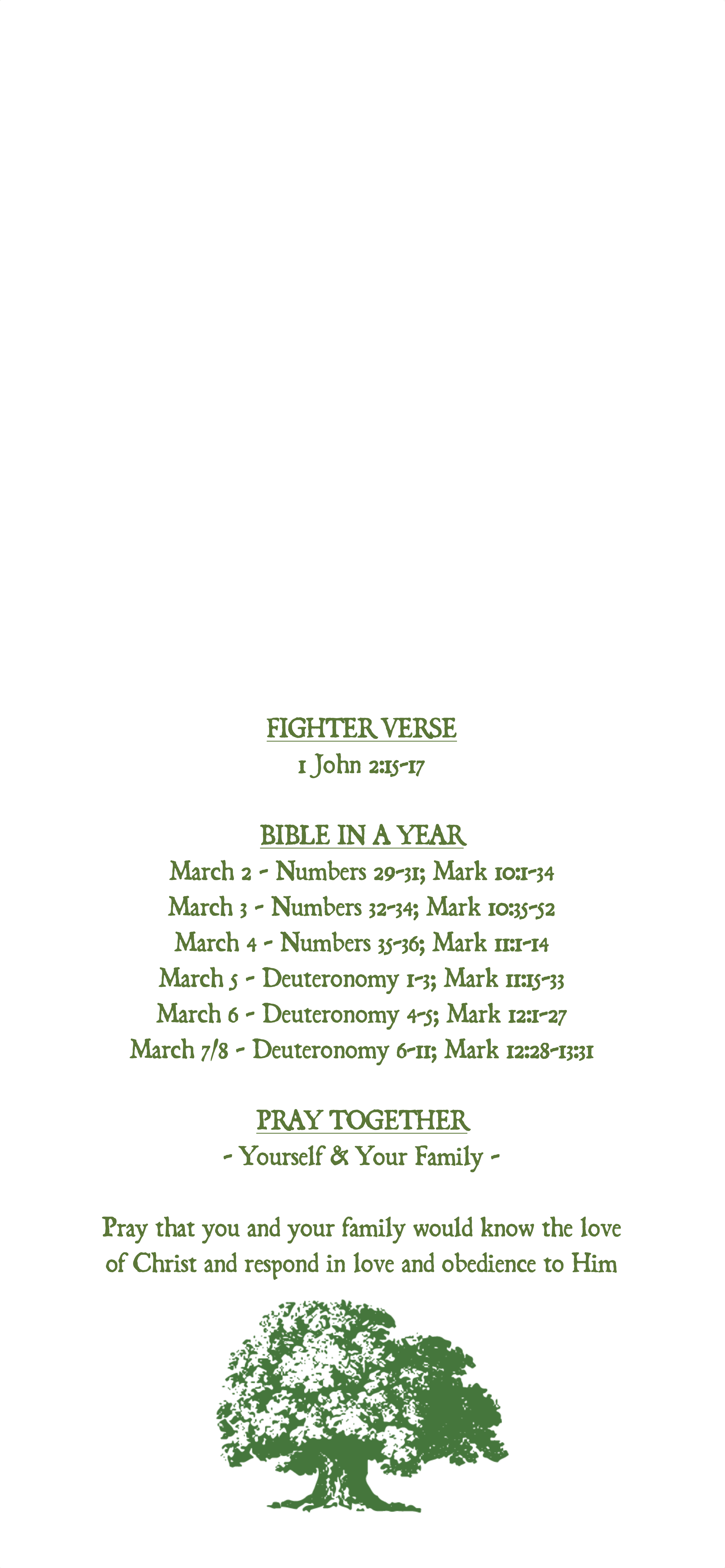 March 1st through March 7th Prayer Focus